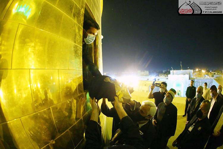 الزمن يمرُّ والسنوات تتعاقب وذكر سبط النبوة الإمام الحسين "عليه السلام" يزداد رفعة وعلواً .. إنها الكرامة الكبرى التي خصّ بها الله تعالى الإمام الحسين وأهله وأصحابه "عليه السلام" وها نحن اليوم نجدد العهد مع قرب حلول ذكرى استشهادهم لتعتلي رايات الحزن والسواد وإعلان الحِداد في مدينة الكاظمية المقدسة، وبغداد وفي عراق الأنبياء والأوصياء، عراق الأئمة النُجباء لنعُلنَ عن انتصار راية الحقّ على الباطل وانتصار الدمِ على السيف وانتصار المظلومِ على الظالِمِ، إذ شهدت العتبة الكاظمية المقدسة المراسم السنوية لاستبدال رايتي القبتين المباركتين للإمامين الكاظمين الجوادين "عليهما السلام" برايتي الحزن والأسى السوداوتين والتي تتزامن مع رفعها فوق قباب العتبات المقدسة العلوية والحسينية، والعسكرية والعباسية، بحضور الأمين العام للعتبة الكاظمية المقدسة الأستاذ الدكتور حيدر حسن الشمّري، وأعضاء مجلس الإدارة وعدد من خدّام الإمامين الكاظمين الجوادين "عليهما السلام"، وممثل المرجعية الدينية العُليا في مدينية الكاظمية المقدسة سماحة الشيخ حُسين آل ياسين، وقد تعذّر توجيه دعوات المشاركة في هذه المراسم السنوية وعقد التجمعات والفعاليات الجماهيرية نظراً للظروف الصحية التي تمرّ بها البلاد، وامتثالاً لتوصيات المرجعية الدينية العُليا متمثلة بسماحة آية الله العظمى السيد علي الحسيني السيستاني "دام ظله الوارف" ودعوته في اتخاذ الإجراءات الصحية الوقائية والحفاظ على صحة الزائرين وسلامتهم فضلاً عن توجيهات وزارة الصحة والبيئة واقتصر البرنامج على عدد محدود مع مراعاة التباعد الوقائي الصحي.
