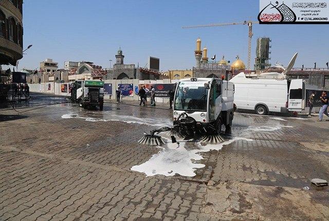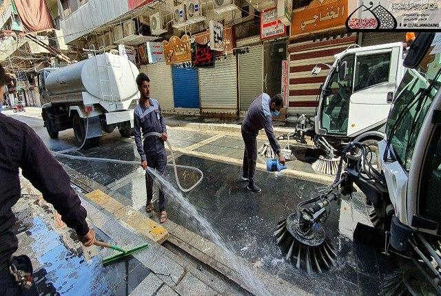 ما زال دم الإمام الحسين "عليه السلام" الطاهر بركاناً يتفجر وما زالت قضيته تشغل القلوب والأذهان حيّة طرية وجرح لا يندمل كأنها حدث بالأمس القريب، وبعد انتهاء المراسم العزائية التي شهدتها مدينة الكاظمية المقدسة، وجّه الأمين العام للعتبة الكاظمية المقدسة الأستاذ الدكتور حيدر حسن الشمّري شعبة النظافة/ وحدة الجهد البلدي بقيام حملة تنظيف وإدامة واسعة استنفرت العجلات الخدمية والحوضية المخصصة لهذه الأعمال حيث تم غسل وتنظيف الطرق والشوارع المجاورة لصحن الإمامين الكاظمين الجوادين "عليهما السلام"، ورفع أكداس النفايات بمشاركة الملاكات الخدمية في قسم الآليات، بعد الانتهاء من مراسم زيارة عاشوراء الأليمة وما احتضنته تلك المدينة المقدسة من جموع موالية بعد أدائهم وإحيائهم للشعائر الحسينية.