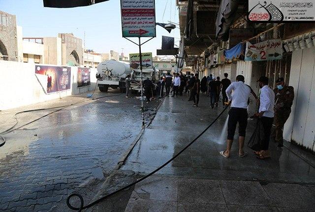 الأمانة العامة للعتبة الكاظمية المقدسة تطلق حملة تنظيف الشوارع المؤدية للصحن الشريف بعد انتهاء مراسم عاشوراء