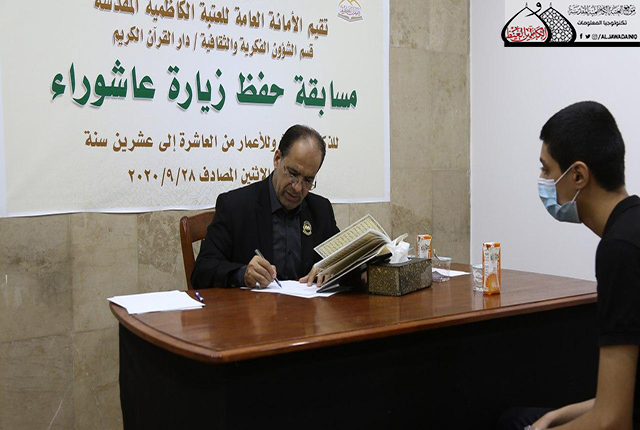 استناداً إلى توجيهات الأمانة العامة للعتبة الكاظمية المقدسة متمثلة بأمينها العام الاستاذ الدكتور حيدر حسن الشمّري، وتشرّفاً بحديث إمامنا جعفر الصادق "عليه السلام" في فضل زيارة عاشوراء وما لها من أهمية حين قال: ( يا صفوان كلما كانت لك حاجة عند الله توجه إليه تبارك وتعالى بقراءة هذه الزيارة والدعاء بعدها في أي مكان كنت واطلب حاجتك فإن الله لا يخلف وعده)، وترسيخاً للمفاهيم التربوية والأخلاقية في نفوس الناشئة والأجيال الفتيّة ورعايتها للنشاطات الثقافية، أجرت الأمانة العامة للعتبة الكاظمية المقدسة/ قسم الشؤون الفكرية والثقافية/ دار القرآن الكريم اختبارات للمشاركين في مسابقة حفظ زيارة عاشوراء المباركة في مقر مدرسة الجوادين "عليهما السلام" في رحاب الصحن الكاظمي الشريف حيث تم اختبار (220) مشاركاً من الذكور والإناث للأعمار من (١٠ـ ٢٠) سنة، مع تأكيد الالتزام بالإجراءات والتعليمات الصحية والوقائية، وخصصت الأمانة العامة للعتبة الكاظمية المقدسة للفائزين جوائز وهدايا نقدية من بركات الإمامين الكاظمين "عليهما السلام" تشجيعاً لهم وتثميناً لمثابرتهم في الحفظ.