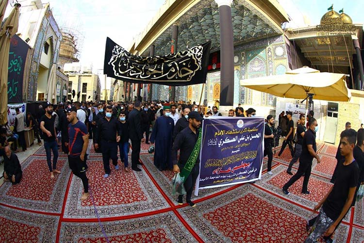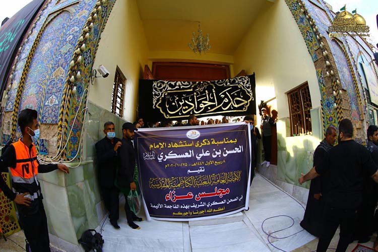 بتوجيه من قبل الأمين العام للعتبة الكاظمية المقدسة الأستاذ الدكتور حيدر حسن الشمّري، شارك كوكبة من خدّام الإمامين الكاظمين الجوادين "عليهما السلام" في الزيارة الكبيرة التي شهدتها مدينة سامراء المقدسة في ذكرى استشهاد الإمام الحسن العسكري "عليه السلام"، حيث عملوا جاهدين جَنباً إلى جنب بمساندة إخوانهم خدام العتبة العسكرية المقدسة، وإحياء هذه المناسبة الأليمة، حيث ساهم الخدم في قسم العلاقات العامة/ وحدة مضيف الجوادين بإرسال المواد الغذائية، ومياه الشرب وتهيئة وجبات الطعام للزائرين الكرام، كما عمد قسم الآليات إلى استنفار جهود العتبة الكاظمية المقدسة وباصاتها الخدمية ودخولها ضمن خطة نقل الزائرين من القطوعات الخارجية إلى أماكن محيط حرم الإمامين العسكريين "عليهما السلام"، وبالعكس، فضلاً عن مشاركة كوكبة من الخدم في قسم حفظ النظام بتقديم خدماتهم على المستويين الأمني والتنظيمي لتأمين أجواء الزيارة، كما أقام موكب خدّام الإمامين الجوادين "عليهما السلام" مجلساً عزائيا خاصاً في رحاب صحن الإمامين الهاديين العسكريين "عليهما السلام" بهذه المناسبة الأليمة.