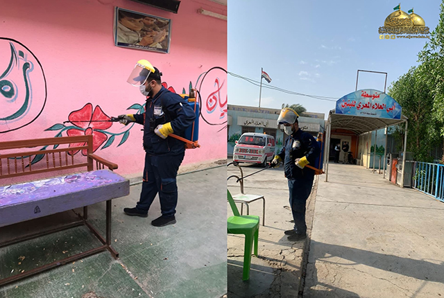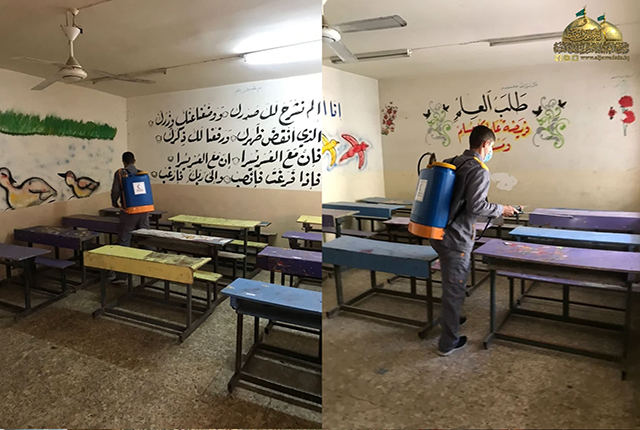 ونحن مقبلون على حلول موسمٍ دراسيٍ جديد في ظل ظروف صحية ووبائية طارئة يعيشها بلدنا العزيز، وجّه الأمين العام للعتبة الكاظمية المقدسة الأستاذ الدكتور حيدر حسن الشمّري بتعزيز إجراءات السيطرة واتخاذ التدابير الوقائية والمشاركة في تأمين الحماية اللازمة لأبنائنا التلاميذ والطلبة والملاكات التربوية والتعليمية من مخاطر انتقال فيروس كورونا المستجد (COVID -19)، إذ سارعت فرق وحدة السلامة العامة في العتبة الكاظمية المقدسة، وبالتعاون مع المديرية العامة لتربية محافظة بغداد الكرخ/ الثالثة بتنفيذ حملة تعفير موسعة لعددٍ من المدارس في قاطع مدينة الكاظمية المقدسة ضمن برنامجها الإنساني والصحي والخدمي مع بدء الموسم الدراسي الجديد، وذلك لأجل توفير بيئة صحية مناسبة والحفاظ على سلامة طلبتنا الأعزاء حيث شهدت الحملة استخدام أجواد أنواع المعقمات والمطهرات، واتباع أحدث طرق التعفير العلمية التي أوصت بها اللجنة العُليا للصحة والسلامة الوطنية.
