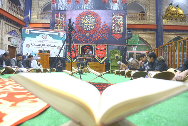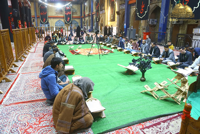 وشهد المحفل باقة من التلاوات القرآنية المباركة، ليَعلو صداها، ويُنثر شذاها في فضاء المزار الشريف، والتزوّد ببركات الذكر الحكيم، ونيل الثواب والأجر العظيم في بيت من بيوت الله، وباب من أبواب قضاء الحوائج.