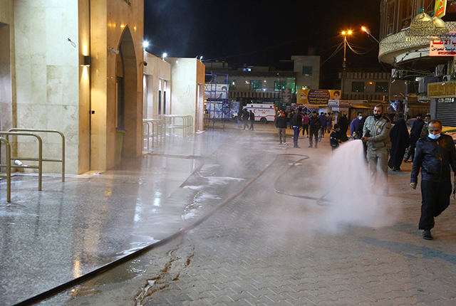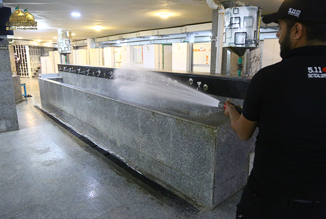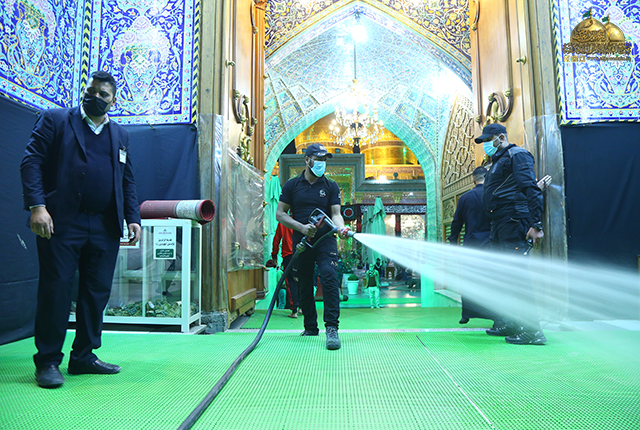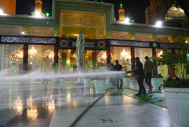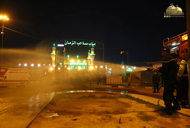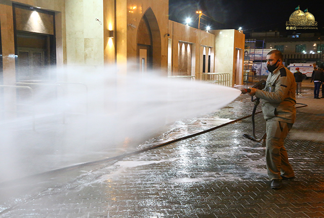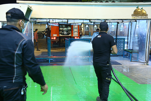 نفذّت الأمانة العامة للعتبة الكاظمية المقدسة/ فريق وحدة السلامة العامة في قسم حفظ النظام وبالتعاون مع وزارة النِفط/ شركة توزيع المنتجات النفطية حملة تعفير وتطهير مفاصل العتبة الكاظمية المقدسة، فضلاً عن الشوارع المحيطة بها تزامناً مع الذكرى الأليمة لشهادة الإمام موسى بن جعفر الكاظم "عليه السلام"، وتم خلالها استخدام مواد طبية مطهرة، وتعزيز إجراءات السيطرة من خلال اتخاذ مجموعة من التدابير الوقائية لتفادي مخاطر تفشي فيروس كورونا المستجد ولتأمين الحماية اللازمة والحفاظ على صحة وسلامة زائري الإمامين الكاظمين الجوادين "عليهما السلام".