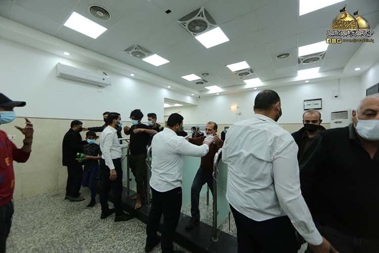 مبيناً المهام الرئيسة للخدم في قسم حفظ النظام والتي شملت المحافظة على أمن الزائرين، وتقديم التسهيلات المتعلقة بأدائهم لمراسم الزيارة، وانسيابية دخولهم إلى الصحن الكاظمي الشريف ومغادرتهم، واتخاذ بعض الإجراءات التنظيمية والصحية والوقائية التي تتناسب مع حجم الزيارة المباركة حيث وجّه السيد الأمين العام للعتبة الكاظمية المقدسة الأستاذ الدكتور حيدر حسن الشمّري بتأمين الخدمة اللازمة للزائرين الكرام من خلال توزيع الكمامات الصحية والمعقمات ونشر منظومات التعقيم في أرجاء الصحن الشريف، وتعزيز ملاكات حفظ النظام بعدد من المتطوعين فضلاً عن فتح جميع المنافذ والممرات للدخول والمغادرة، لضمان انسيابية حركة الزائرين وتحقيق التباعد البدني، وتوسيع نقاط التفتيش لتقليل الزخم الحاصل على الأبواب الرئيسة وتحقيق التباعد البدني.