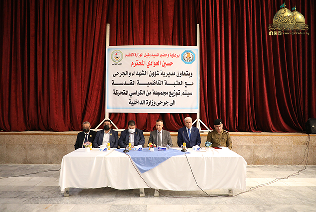 تزامنا مع ذكرى ولادة الموعود من آل محمد، صاحب الأمر الإمام المهدي المنتظر "عجل الله فرجه الشريف"، والذكرى السنوية السابعة لانطلاق فتوى الدفاع الكفائي المباركة، وجّه الأمين العام للعتبة الكاظمية المقدسة خادم الإمامين الكاظمين الجوادين الدكتور حيدر حسن الشمّري بإهداء مجموعة من الكراسي الطبية المتحركة إلى الشهداء الأحياء ذوي الاحتياجات الخاصة من جرحى قواتنا الأمنية البطلة من الضباط والمراتب في وزارة الداخلية بالتعاون والتنسيق مع مديرية شؤون الشهداء والجرحى في حفل أقيم بحضور الوكيل الأقدم لوزارة الداخلية الأستاذ حسين العوادي ووفد العتبة المقدسة وعدد من القيادات الأمنية، وذلك وفاءً وافتخاراً بهذه الثلة المؤمنة الذين نالوا وسام شرف التضحية والنصر والفداء في ساحات العزّة والشرف، ورخصوا أرواحهم ودماءهم من أجل الدفاع عن أرض العراق ومقدساته.