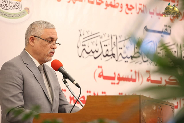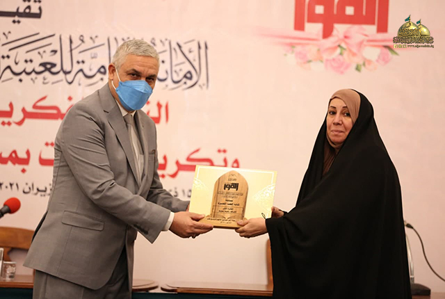 استهل الحفل بتلاوة من الذكر الحكيم شنّف بها مسامع الحضور قارئ العتبة المقدسة الخادم فراس الطائي، بعدها قراءة سورة الفاتحة المباركة ترحماً على أرواح الشهداء وقراءة أنشودة الفردوس، أعقبتها كلمة الأمانة العامة للعتبة الكاظمية المقدسة وألقاها نائب أمينها العام جاء فيها: (اهتمت الشريعة الإسلامية اهتماماً كبيرا بالمرأة وبمكانتها في المجتمع، وبينت مقامها ودورها في التربية والتعليم ولم يغبن حقها القرآن الكريم بل جعلها حاضرة مع الرجل وأشار إليها في بعض آياته حينما لم يفرّق الله تعالى بين الذكر والأنثى في العمل والجزاء، وجعل سبحانه وتعالى التقوى مقياس الجزاء.. وبشر الله تعالى المؤمنين نساءً ورجالا بقوله: ﴿ فَاسْتَجَابَ لَهُمْ رَبُّهُمْ أَنِّي لَا أُضِيعُ عَمَلَ عَامِلٍ مِنْكُمْ مِنْ ذَكَرٍ أَوْ أُنْثَى بَعْضُكُمْ مِنْ بَعْضٍ ﴾.. فالحياة لا تستقيم إلا بتكاتف الرجل والمرأة معاً وكلاهما يكمل الآخر، كلٌّ في دائرة اختصاصه.