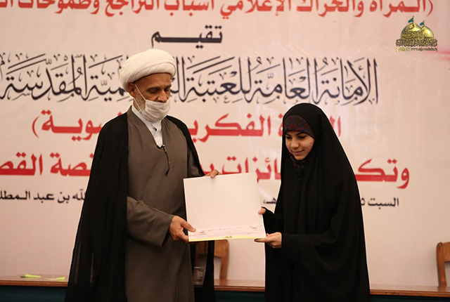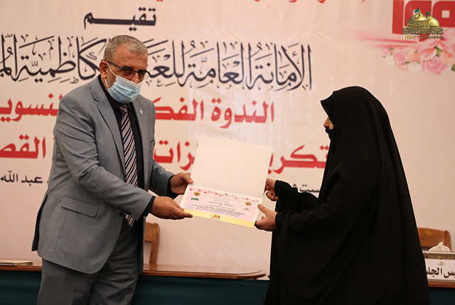 وبهذه المناسبة المباركة وبرعاية كريمة من قبل خادم الإمامين الكاظمين الجوادين، الأمين العام للعتبة الكاظمية المقدسة الدكتور حيدر حسن الشمّري، أقامت الأمانة العامة للعتبة الكاظمية المقدسة/ قسم الشؤون الفكرية والثقافية، في رواق سيدنا عبد الله بن عبد المطلب "عليه السلام" الندوة الفكرية النسوية تحت شعار: ( المرأة والحِراك الإعلامي أسباب التراجع وطموحات النهوض ) وتكريم الفائزات بمسابقة القصة القصيرة، بحضور نائب الأمين العام للعتبة الكاظمية المقدسة المهندس سعد محمد حسن، وعضو مجلس الإدارة والمُشرف على قسم الشؤون الفكرية والثقافية المهندس جلال علي محمد، ونخبة من الشخصيات العلمية والأكاديمية، وممثلي الأقسام الفكرية والثقافية والإعلامية في المؤسسات الحكومية.