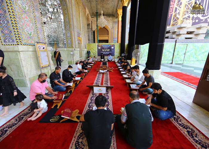 لمناسبة حلول شهر محرم الحرام، وذكرى شهادة الإمام الحسين "عليه السلام"، وانطلاقاً عما ورد في الزيارة الجامعة " كنت للرّسول صلّى الله عليه وآله ولدا، وللقرآن سندا، وللإمّة عضدا " وتأكيداً للعلاقة الوطيدة بين العترة الطاهرة والقرآن الكريم في قول النبي الأكرم محمد "صلى الله عليه وآله" ( إني تارك فيكم الثقلين : كتاب الله ، وعترتي أهل بيتي ، ما إن تمسكتم بهما لن تضلوا بعدي أبدا )، أقامت الأمانة العامة للعتبة الكاظمية المقدسة مركز القرآن الكريم جلسات الختمة القرآنية المُهداة للإمام الحسين وشهداء الطف "عليهم السلام"، وبواقع جلستين الأولى للرجال، وأخرى للنساء والتي ستستمر بإذنه تعالى طيلة أيام شهري محرم الحرام، وصفر الخير، والمهدى ثوابها إلى سيد الشهداء الإمام الحسين وأهل بيته وأنصاره الكرام "عليهم السلام" بمشاركة عدد من قرّاء العتبة المقدسة، وبمشاركة عددٍ من أساتذة وطلبة وطالبات الدورات القرآنية، وزائري وزائرات الإمامين الكاظمين الجوادين "عليهما السلام".
