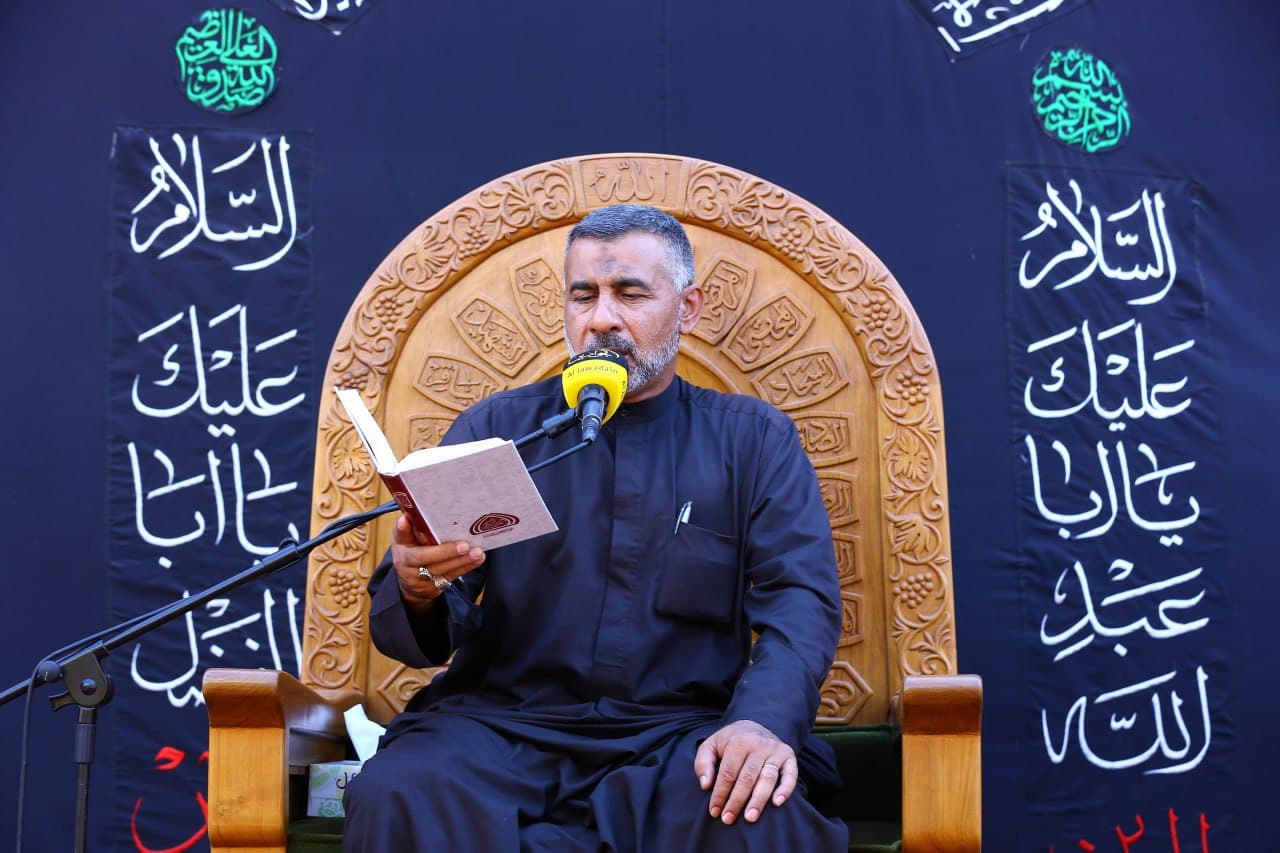 استهلت المراسم بتلاوة آيٍ من الذكر الحكيم للقارئ الشيخ عامر الخفاجي، بعدها ارتقى المنبر فضيلة الشيخ عبدالله الكعبي لقراءة (المقتل الحُسيني) وسرد القصة الكاملة لواقعة الطف الأليمة، وكيف طلعت في ذلك اليوم رؤوس الأسنّة والرماح والأحقاد وهي مشرعة لتلتهم جسد وريث الرسالة وحامل راية القيم السامية الإمام الحسين وأهل بيته وأصحابه الأبرار "عليهم السلام"، حينها ضج الحاضرون بالنحيب والبكاء وذرفوا الدموع حزنا وألماً على ما جرى من مأساة وحيف وظلم على أهل بيت العصمة "عليهم السلام".