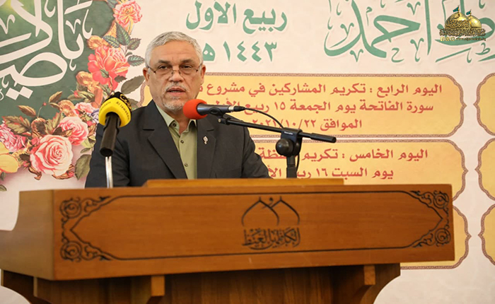 وأضاف: إن الغاية من إقامة هذا المهرجان هو إحياء ذكر النبي وأهل بيته "صلوات الله وسلامه عليهم أجمعين" بتوظيف أكثر من نشاط في ذكر أخلاقهم العظيمة، وسجاياهم النبيلة ،والإشادة بشرفهم وفضلهم بل هو تكريم لمن كرّمه الله تعالى وأمر بتكريمه، وحث على احترامه وحُبهِ ومودتهِ، وهو بالتالي أداء شكر لله تعالى على تلك الهبة العظيمة للبشرية عامة وللمسلمين خاصة).