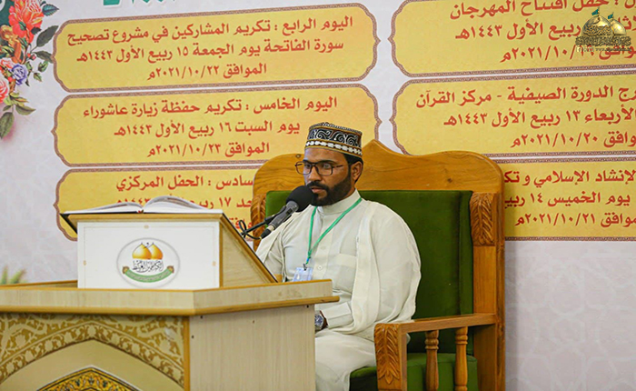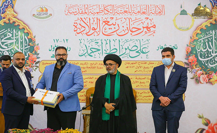 في إطار سعي الأمانة العامة للعتبة الكاظمية المقدسة متمثلة بخادم الإمامين الكاظمين الجوادين الدكتور حيدر حسن الشمّري، وأعضاء مجلس إدارته الموقّر بتفعيل روابط التواصل القرآني، وإسهامها في نشر الثقافة القرآنية من خلال تعاونها وتواصلها مع نشاطات المؤسسات القرآنية في ربوع عراقنا الحبيب، وضمن فعاليات اليوم الرابع لمهرجان ربيع الولادة الذي يُقام في العتبة الكاظمية المقدسة تحت شعار: (على صِراط أحمد)، أقام مركز القرآن الكريم التابع لقسم الشؤون الفكرية والثقافية في العتبة المقدسة وبالتعاون مع رابطة القرآنيين في محافظة واسط، حفل تكريم العاملين في المشروع القرآني الوطني في زيارة الأربعين لتصحيح قراءة سورة الفاتحة، وكوكبة من البراعم الطلبة من حفظة القرآن الكريم في محافظة واسط، بحضور نخبة من الشخصيات الدينية ومسؤولي الدور والمؤسسات القرآنية.