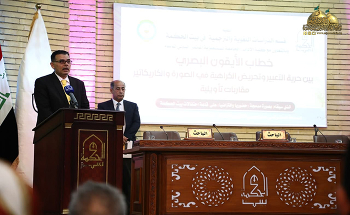 بتوجيه من قبل خادم الإمامين الكاظمين الجوادين "عليهما السلام" الأمين العام للعتبة الكاظمية المقدسة حيدر حسن الشمّري، لبّى وفد العتبة المقدسة دعوة حضور المؤتمر الدولي الثاني الذي أقامهُ قسم الدراسات اللغوية والترجمية في بيت الحكمة وبالتعاون مع كلية الآداب/ الجامعة المستنصرية والموسوم: (خطاب الأيقون البصري بين حرية التعبير وتحريض الكراهية في الصورة والكاريكاتير .. مقاربات تأويلية).