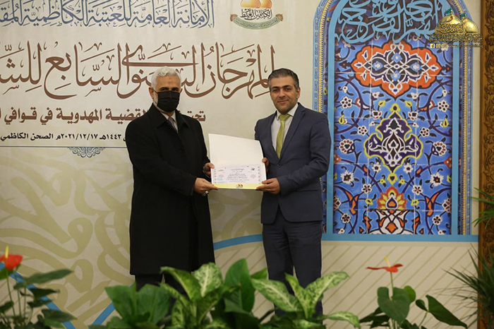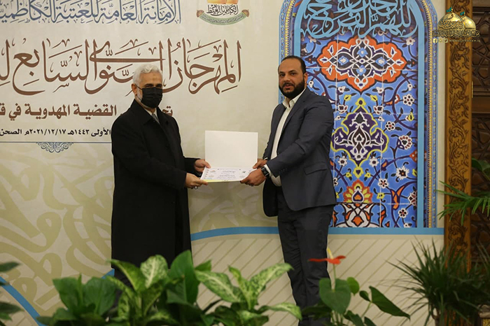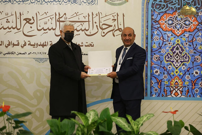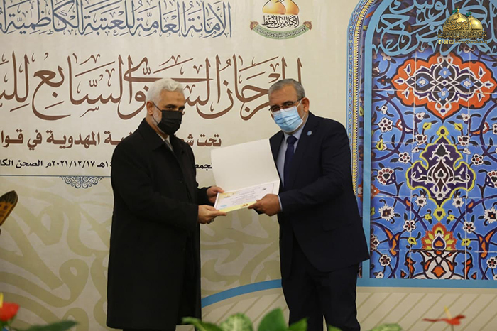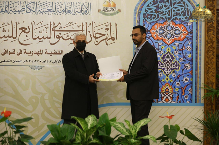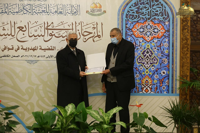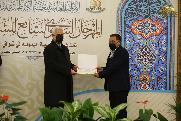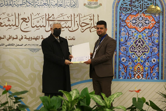 وكان مسك ختام فعاليات هذا المهرجان توزيع الدروع والشهادات التقديرية على الشعراء المشاركين، والجنة المنظمة للمهرجان والشعراء والرواد الذين خدموا في العتبة المقدسة فضلاً عن ضيف المهرجان الدكتور محمد حسين آل ياسين رئيس المجمع العلمي العراقي، وسط تطلعات الأمانة العامة للعتبة الكاظمية المقدسة بأن يكون هذا المهرجان والمهرجانات القادمة بإذنه تعالى مناسبةً لتكريس وتجذير المبادئ السامية التي دعا إليها أهل البيت "عليهم السلام" فضلاً عن توظيف الشعر العربي لنشر الأخلاق والعقائد وترسيخ الثقافة المستندة إلى لغة القرآن الكريم، وتعزيز لغة الضاد بالنتاجات الأدبية.