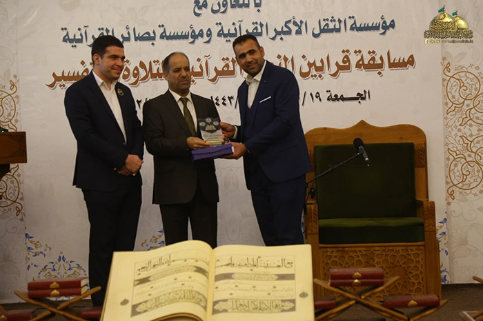 بعدها بدأت الاختبارات التنافسية بمشاركة نُخبة من القرّاء الشباب ومن مختلف المحافظات العراقية حيث تميزت آلية المسابقة بمستوى عالٍ من الحيادية والتنظيم، لتنتهي بإعلان النتائج وأسماء الفائزين بالمسابقة وفوز القارئ علي عبدالله كريم بالمركز الأول، والقارئ سجاد محمد حطاب بالمركز الثاني، وجاء بالمركز الثالث القارئ مالك عبد الكاظم، وفي ختام المسابقة قدّمت مؤسسة الثقل الأكبر القرآنية شهادة تقديرية وهدية تذكارية إلى الأمانة العامة للعتبة الكاظمية المقدسة/ مركز القرآن الكريم، فضلاً عن توزيع الدروع والشهادات التقديرية إلى أعضاء اللجنة التحكيمية والقرّاء الفائزين الذين صدحت حناجرهم وجادت قرائحهم بتلاوات مباركة من الذكر المجيد والذين سيمثلون العراق في المحافل والمسابقات الدولية إن شاء الله تعالى.