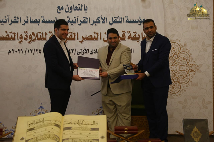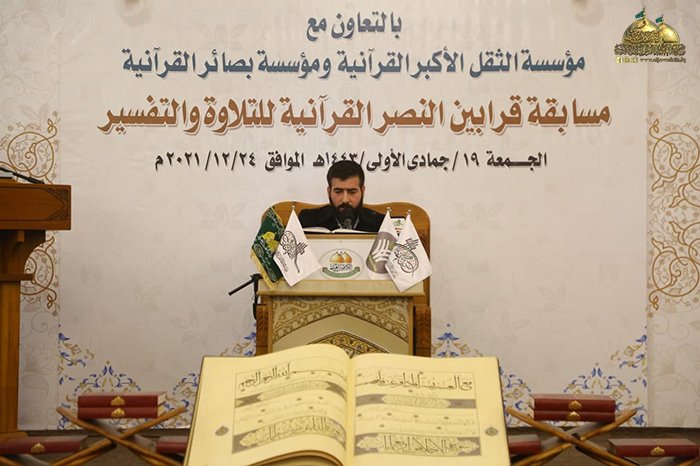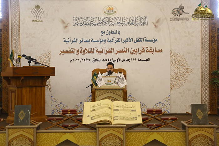 في ذُرى المجد والولاء وديار كرم الإمامة وفيضها الزاخر، ومن بقعة الطهر المُفعمة بالقداسة والإيمان رحاب الإمامين موسى بن جعفر الكاظم ومحمد بن علي الجواد "عليهما السلام" استضيفت فعاليات مسابقة قرابين النصر القرآنية للتلاوة والتفسير التي أقيمت برعاية الأمانة العامة للعتبة الكاظمية المقدسة/ مركز القرآن الكريم التابع لقسم الشؤون الفكرية والثقافية، بالتعاون مع مؤسسة الثقل الأكبر القرآنية، ومؤسسة بصائر القرآنية بحضور نخبة من ممثلي المؤسسات والروابط القرآنية والمهتمين بالشأن القرآني.