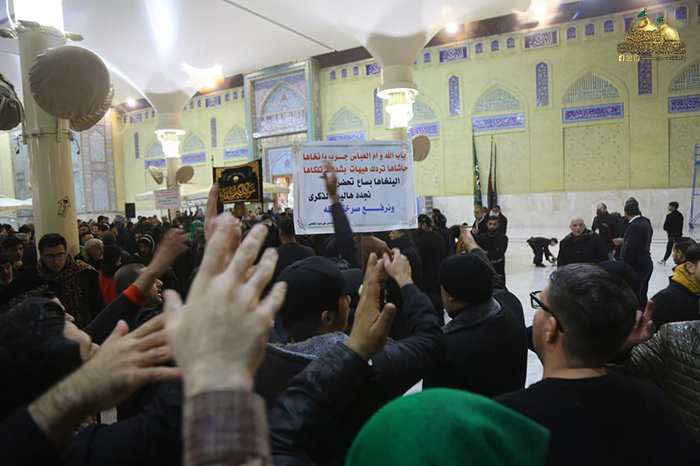 وشارك تلك الجموع المعزّية خادم الإمامين الكاظمين الجوادين، الأمين العام للعتبة الكاظمية المقدسة الدكتور حيدر حسن الشمّري، وعددٍ من أعضاء مجلس الإدارة الموقّر، وجمع من خدّام العتبة المقدسة، وتجمهرت المواكب المعزّية في رواق السيد عبد الله بن عبد المطلب "عليه السلام" لتختتم مسيرتها بمجلس تأبيني مستذكرين خلاله مآثرها "عليها السلام" وأبعاد مسيرتها الإنسانية والإيمانية والرسالية والاجتماعية، ودورها الكبير في حياة الأمة وتضحياتها بالغالي والنفيس وجهادها المرير، ومواقفها الصلبة في الحفاظ على مفهوم المسيرة المحمدية، بعدها ابتهل المعزّون إلى الله العليّ القدير بالدعاء بتعجيل فرج مولانا القائم من آل محمد "عجل الله فرجه الشريف"، وأن يرحم شهداءنا، وأن يعم الأمن والأمان على بلدنا العزيز وشعبنا الأبي الصابر.