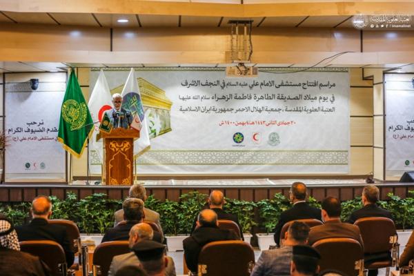 وشهد حفل الافتتاح إلقاء كلمات بهذه المناسبة أثنت على الجهود التي أسهمت في انجاز هذا المشروع المبارك ذات الأهمية الكبيرة، وذلك لما سيقدّمه من رعاية طبية وخدمات علاجية تخصصية لمواطني مدينة النجف الأشرف والمحافظات المجاورة لها، وزائري أمير المؤمنين "عليه السلام".