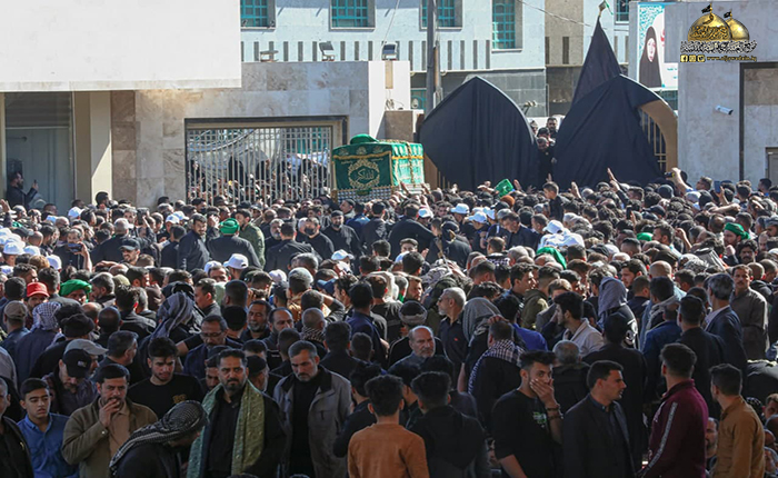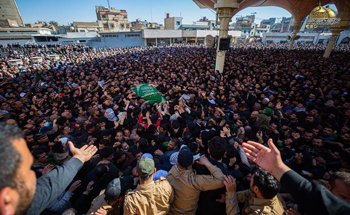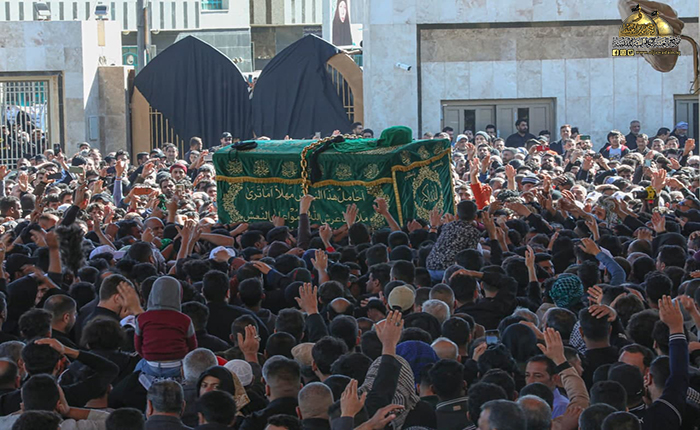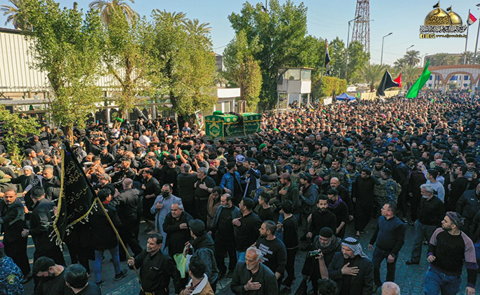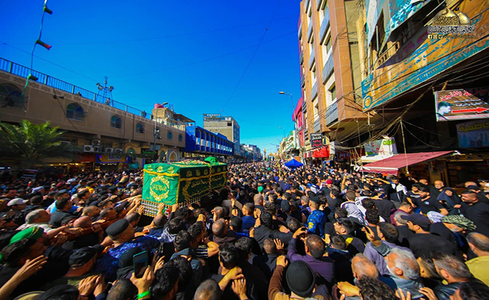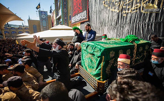 جُلجلت القيود ودوت الأصفاد لتُنذر بصداها العالم الإسلامي قدوم مناسبة ذكرى شهادة رهين السجون والمغيّب في ظلم المطامير الإمام موسى بن جعفر الكاظم "عليه السلام"، وما كان للملايين من الموالين والمحبين إلا التلبية والسعي الحثيث من كل حدب وصوب قاصدين جنته ومرقده الشريف إحياءً لذكراه الأليمة ومعزين لحفيده صاحب العصر والزمان الإمام المهدي "عجل الله فرجه الشريف"، حيث شهدت مدينة الكاظمية المقدسة صباح يوم الأحد الخامس والعشرين من شهر رجب الأصب 1443 هـ الموافق 27/ شباط 2022 مراسم التشييع الرمزي لنعش المسموم والمظلوم الإمام موسى بن جعفر الكاظم "عليه السلام" محفوفاً بالحشود الهائلة عبر مسيرة إيمانية متجهة صوب الصحن الكاظمي الشريف، حيث استقبل بالتكبير والخشوع والهيبة وذرف الدموع من قبل المعزّين، وحضر هذه المراسم الأليمة خادم الإمامين الكاظمين الجوادين، الأمين العام للعتبة الكاظمية المقدسة الدكتور حيدر حسن الشمّري وأعضاء مجلس الإدارة الموقّر، وخدام العتبة المقدسة، وأهالي مدينة الكاظمية المقدسة، وشخصيات دينية واجتماعية، وبمشاركة الحشود المليونية الوافدة إلى الصحن الكاظمي الشريف والتي استمر توافدها على مدى أيام عدّة من مختلف أنحاء البلاد وخارجها.