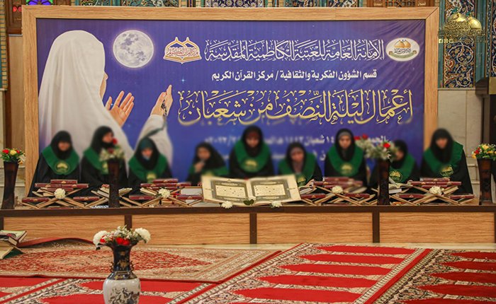 وشهد المنهاج المعدّ لإحياء هذه الليلة المباركة مشاركة قارئ العتبة المقدسة القارئ الشيخ عامر الخفاجي ومجموعة من الحافظات بتلاوة معطرة من الذكر العزيز، وقراءة الأعمال والمستحبات، حيث روي عن الإمام الباقر "عليه السلام" في فضلها قال: (هي أفضل الليالي بعد ليلة القدر، فيها يمنح الله العباد فضله، ويغفر لهم بمنّه، فاجتهدوا في القربة الى الله تعالى فيها، فإنها ليلة إلى الله "عزوجل" على نفسه أن لا يردَّ سائلاً فيها، ما لم يسأل الله المعصية، وإنها الليلة التي جعلها الله لنا أهل البيت بإزاء ما جعل ليلة القدر لنبينا "صلّى الله عليه وآله وسلم" فاجتهدوا في دعاء الله والثناء عليه).