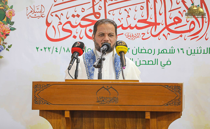 لمناسبة الذكرى العطرة لولادة ثاني الأئمة الأمناء سبط النبي الأكرم "صلى الله عليه وآله وسلم" وسيد شباب أهل الجنة الإمام أبو محمد الحسن الزكي "عليه السلام" الذي انبثق من وحي النبوة ونور الإمامة، ليرفع الله تبارك وتعالى به كيان الإسلام، ويشيد به صروح الإيمان، أقامت الأمانة العامة للعتبة الكاظمية المقدسة وبرعاية مباركة من قبل أمينها العام خادم الإمامين الكاظمين الجوادين الدكتور حيدر حسن الشمّري حفلاً بهيجاً في رحاب صحن باب المراد بحضور نائب الأمين العام المهندس سعد محمد حسن، وعددٍ من أعضاء مجلس الإدارة والشخصيات الاجتماعية وجمع غفير من زائري الإمامين الكاظمين " عليهما السلام".
