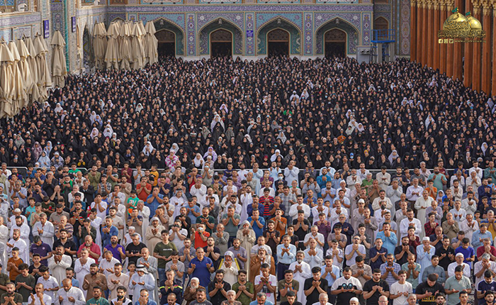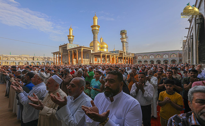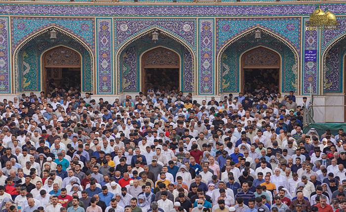 مشهد إيماني كبير احتضنته رياض الإمامة وينابيع المعاجز والكرامات رحاب الإمامين الهمامين الكاظمين الجوادين "عليهما السلام"، ومنذ ساعات الصباح الأولى ليوم الثلاثاء 1 شوال 1443 هـ الموافق 3 آيار 2022، تجلّت الفيوضات الإلهية بأروع صورها لتكون خاتمة للصيام ومكللة بالطاعات، حيث تراصّت صفوف جموع الموالين ليتضرعوا إلى بارئهم بطاعة وخشوع وإيمان وهم يؤدون صلاة عيد الفطر المبارك وزيارة الإمامين الكاظمين "عليهما السلام".