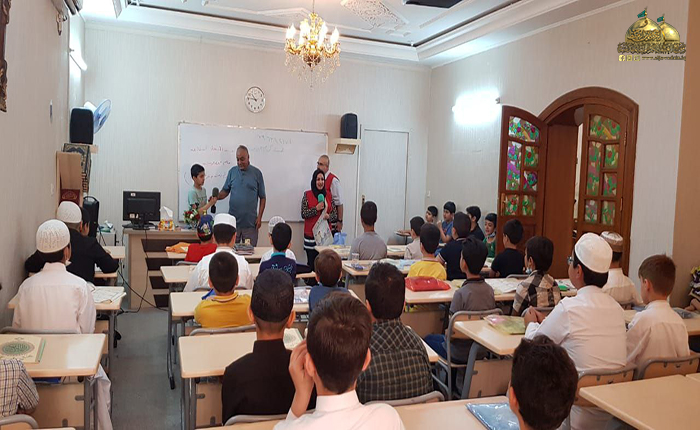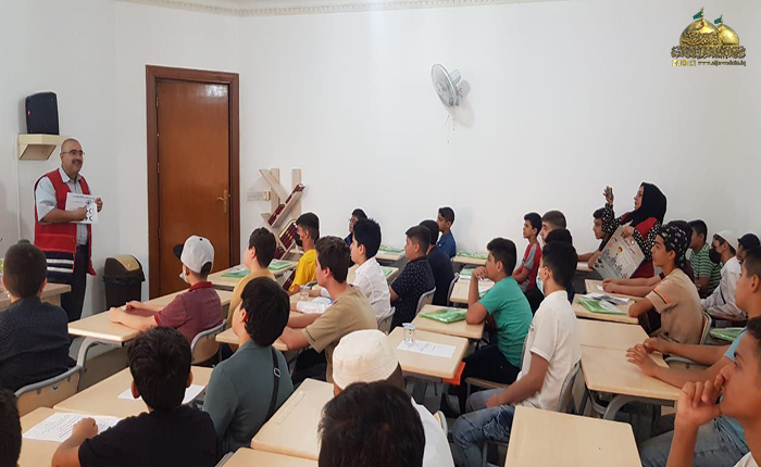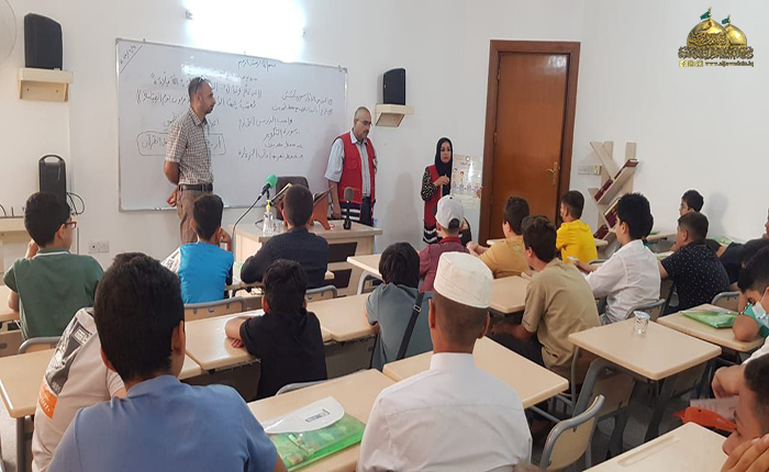 وفي سياق متصل نظم مركز القرآن الكريم وبالتعاون مع فرق جمعية الهلال الأحمر العراقية إقامة محاضرات توعوية لطلبة الدورات القرآنية الصيفية لتوجيههم بالنصائح والإرشادات وطرق الوقائية الصحية من انتقال الأوبئة والأمراض والمحافظة على النظافة العامة.