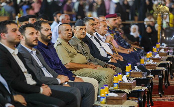 لمناسبة حلول عيد الغدير الأغر، يوم تجديد البيعة التي عقد لواءها النبي الأكرم محمد "صلى الله عليه وآله" بيده لعلي بن أبي طالب "عليه السلام" يوم الثامن عشر من ذي الحجة سنة 10هـ، ليسقي الوالهين من سلسبيل خيره وهدي نعمائه، ويفتح بمروره في كل عام العشق لمحمد النبي ولعلي الوصي وللأئمة من بعده "عليهم السلام" وإعلان العهد والولاء لصاحب الغدير وخليفة رسول ربّ العالمين على جميعِ المسلمين أمير المؤمنين الإمام علي بن أبي طالب "عليه السلام" بكل ألوان الولاء، فمن جنة الإمام الكاظم وحفيده الإمام الجواد "عليهما السلام"، شاركت الأمانة العامة للعتبة الكاظمية المقدسة الأمة الإسلامية أفراحها من خلال إقامة حفلها المركزي البهيج في رحاب صحن باب المراد، بحضور نائب الأمين العام للعتبة الكاظمية المقدسة المهندس سعد محمد حسن، وعددٍ من أعضاء مجلس الإدارة الموقر، والعديد من الشخصيات الحكومية والدينية والاجتماعية وجمع غفير من زائري الإمامين الجوادين "عليهما السلام".