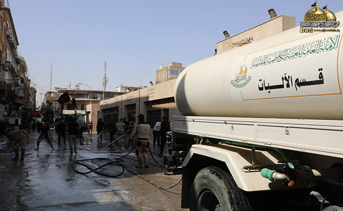 ما زال دم الإمام الحسين "عليه السلام" الطاهر بركاناً يتفجر وما زالت قضيته تشغل القلوب والأذهان حيّة طرية وجرح لا يندمل كأنها حدث بالأمس القريب، وبعد انتهاء المراسم العزائية التي شهدتها مدينة الكاظمية المقدسة، وجّه خادم الإمامين الكاظمين الجوادين، الأمين العام للعتبة الكاظمية المقدسة الدكتور حيدر حسن الشمّري شعبة النظافة/ وحدة الجهد البلدي بالمباشرة بحملة تنظيف وإدامة واسعة استنفرت العجلات الخدمية والحوضية المخصصة لهذه الأعمال حيث تم غسل وتنظيف الطرق والشوارع المجاورة لصحن الإمامين الكاظمين الجوادين "عليهما السلام"، ورفع أكداس النفايات بمشاركة الملاكات الخدمية في قسم الآليات، بعد الانتهاء من مراسم زيارة عاشوراء الأليمة وما احتضنته تلك المدينة المقدسة من جموع موالية بعد أدائهم وإحيائهم للشعائر الحسينية.