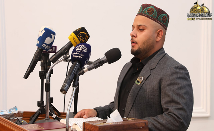 استهل المؤتمر بتلاوة أيٍ من الذكر الحكيم شنّف بها قارئ العتبة المقدسة الخادم علي ماهر أسماع الحاضرين، وقراءة سورة الفاتحة المباركة أُهدي ثوابها لشهداء العراق والأمة الإسلامية، ثم الاستماع إلى النشيد الوطني.