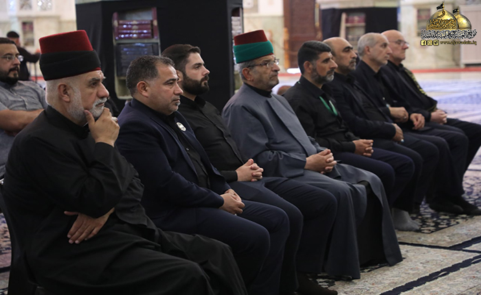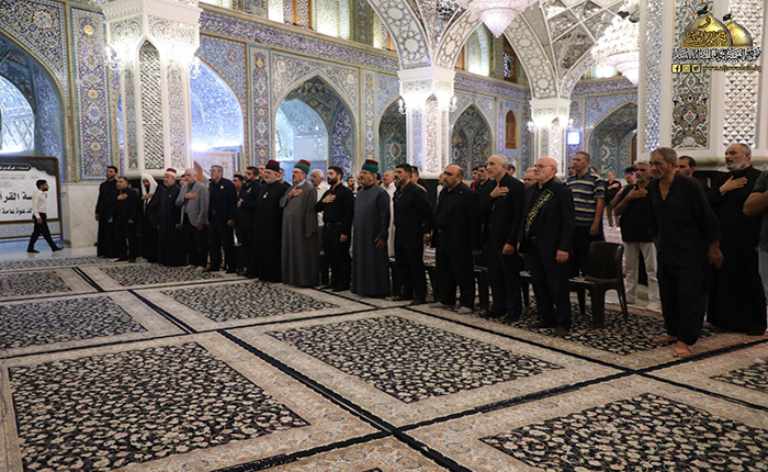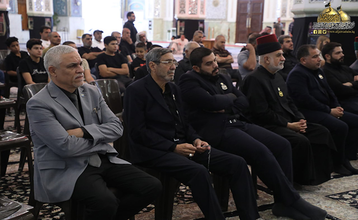 من طف كربلاء نستلهم الخلود والإباء، ونجدد الحزن والعزاء لإحياء ذكرى شهادة زين المتهجدين ودرة الصالحين الإمام علي بن الحسين "عليه السلام" في الخامس والعشرين من شهر محرم الحرام، وبرعاية مباركة من خادم الإمامين الكاظمين الجوادين الأمين العام للعتبة الكاظمية المقدسة الدكتور حيدر حسن الشمّري، أقام موكب خدّام العتبة الكاظمية المقدسة مجلسه العزائي السنوي بهذه المناسبة الأليمة في رواق سيدنا عبد الله بن عبد المطلب "عليه السلام"، استضيف فيه خادم العتبة المقدسة فضيلة الشيخ منير الكاظمي ليتحف الحضور بمحاضرة دينية قيمة تناول فيها قَبَسات من السيرة المباركة للإمام الرابع من الأئمة الهداة "عليهم السلام" إذ بيّن في بحثه الصفات التي تجلّت في شخصية الإمام السجاد "عليه السلام" وهي: " العِلم والعدالة والشجاعة"، وأشار إلى مضامين الصحيفة السجادية والأدعية الواردة فيها التي تفضي بالإنسان للوصول إلى مقاصد الإمام "عليه السلام" لنيل رضا الله تعالى والتي تعمل على تربية المؤمن من خلال أدب الدعاء والابتهال إلى الله عز وجل.