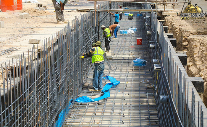 تجدّد العزم بخطوات واثقة في إطار الحركة العمرانية التي تشهدها العتبة الكاظمية المقدسة والارتقاء بمشاريع هذه البقعة المقدسة، تواصل الملاكات قسم الشؤون الهندسية في العتبة الكاظمية المقدسة جهودها بوتيرة متصاعدة في أعمال مشروع البنى التحتية للصحن الكاظمي الشريف، وعن طبيعة تلك الجهود تحدّث لموقع العتبة الكاظمية المقدسة الإلكتروني المشرف على المشروع المهندس مازن كاظم مهدي قائلاً: أن مشروع البنى التحتية هو من المشاريع الحيوية والمهمة التي حرصت الأمانة العامة للعتبة الكاظمية المقدسة على تنفيذه بدعم ومتابعة حثيثة من قبل أمينها العام خادم الإمامين الكاظمين الجوادين الدكتور حيدر حسن الشمّري، وذلك لكونه يوفر مسارات جديدة للخدمات والمنظومات كافة في أرجاء الصحن القديم بمساحة تقدر (8000) م2 ، وشهد المشروع بعد استكمال المخططات المعمارية والإنشائية، مرحلة إزالة طبقة الإكساء القديم ورفع المرمر والعمليات الحفرية للمسارات والأنفاق الجديدة لتأتي بعدها عملية المعالجات بالمواد العازلة، ثم مدّ مشبكات التسليح وصبّ الخرسانات الكونكريتية.