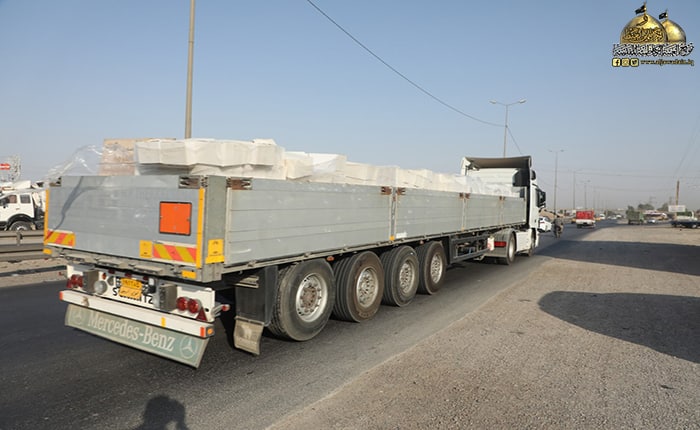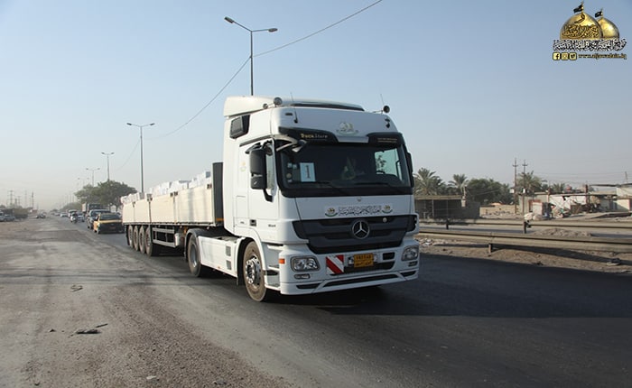 انطلاق القافلة الأولى للمستلزمات الخدمية إلى العتبة العسكرية المقدسة استعداداً لزيارة الأربعين