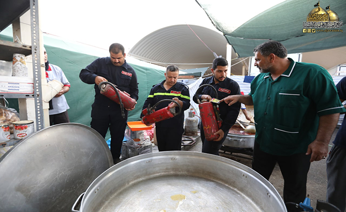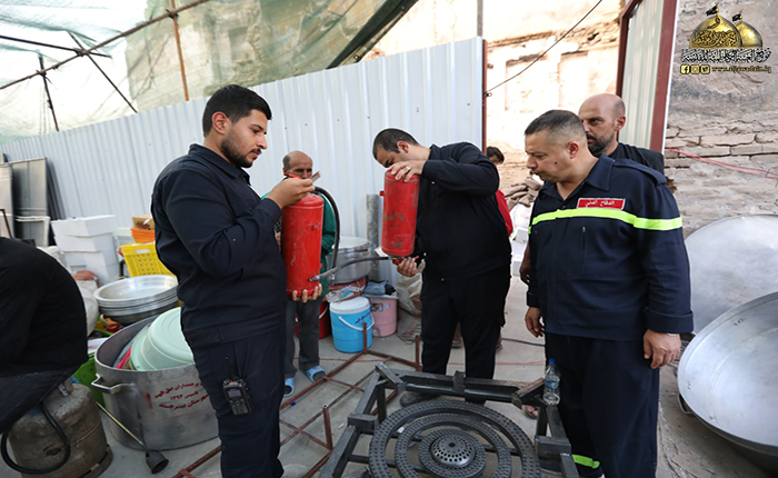 استناداً إلى توجيهات الأمين العام للعتبة الكاظمية المقدسة خادم الإمامين الكاظمين الجوادين الدكتور حيدر حسن الشمّري باشرت فرق وحدة الدفاع المدني والسلامة العامة في العتبة الكاظمية المقدسة أعمالها بخطة استباقية خاصة بموسم أربعينية الإمام الحسين "عليه السلام" تم خلالها إجراء الكشوفات والتفتيش لجميع مفاصل العتبة المقدسة، والتعاون والتنسيق العالي مع مديرية الدفاع المدني العامة، وتهيئة عجلات الإطفاء ومعدات الإنقاذ الخفيف والمطافئ الخاصة بالعتبة المقدسة لمواجهة أي طارئ من حوادث الحريق والكوارث لا قدر الله تعالى، وتجهيز مواقع الأمانات الساندة لحقائب الزائرين بمطافئ الحريق وفحصها بصورة دورية، وكذلك تثبيت لوحات الدلالة الإرشادية التي تخص سلامة وصحة الزائرين الكرام، وتوفير مقومات السلامة الوقائية في المواكب الحسينية المنتشرة في صحون الحرم الكاظمي الشريف وتجهيزها بحقائب الإسعاف الأولي، فضلا عن إجراء حملات التوعية الصحية للزائرين الكرام وخدّام العتبة المقدسة.
