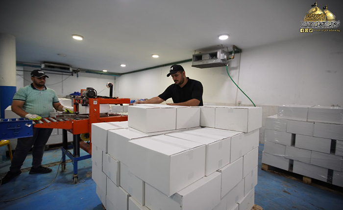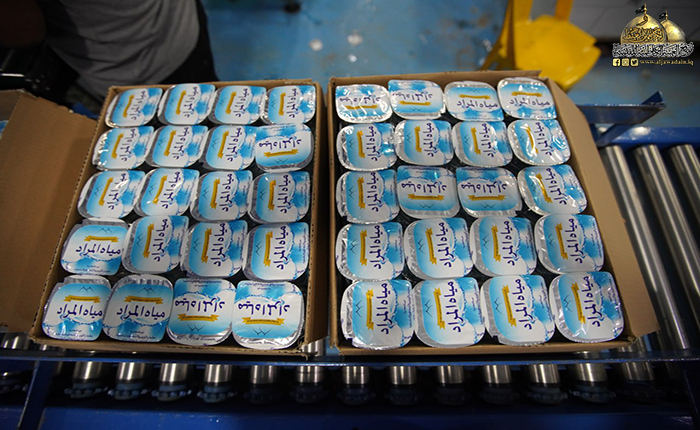وبيّن في حديثه أن الطاقة الانتاجية قد وصلت إلى أكثر من (108000) قدح يومياً والعدد قد يتصاعد مع مراعاة جودة الإنتاج، وأن هذه الكميات من المياه توزع على النحو الآتي: منها لسدّ حاجة مضيف الإمامين الجوادين "عليهما السلام"، وأخرى توزع إلى أماكن مبيت الزائرين الكرام، وجزءاً منها يوزع على المواكب الحسينية والجوامع والحسينيات وعددٍ من البيوتات المُضيّفة في مدينة الكاظمية المقدسة والمناطق المجاورة لها.