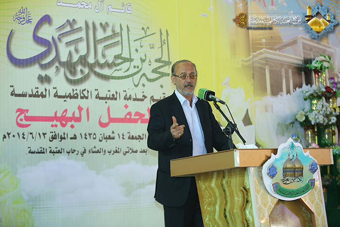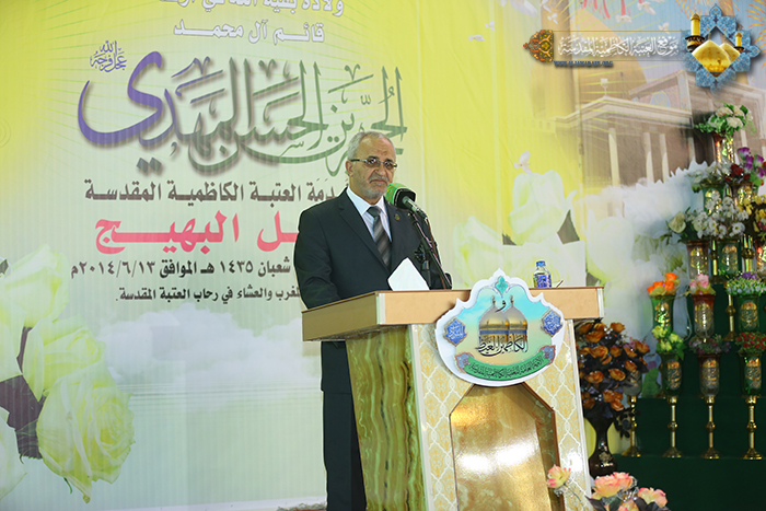 يتجدد الشوق والولاء ونحن بانتظار إطلالة شمس الحرية ذو الطلعة البهية مُخلص الأنام من الظلام والعبودية حجة الله على أرضه إمامنا المهدي المنتظر"عجل الله تعالى فرجه الشريف" وابتهاجاً بذكرى ولادته في ليلة النصف من شعبان المبارك أقامت الأمانة العامة للعتبة الكاظمية المقدسة حفلها البهيج التي دأبت على إحيائه سنوياً في رحاب الصحن الكاظمي الشريف، وحضر هذه المناسبة الأمين العام للعتبة الكاظمية المقدسة أ.د "جمال الدباغ" وأعضاء مجلس الإدارة وعدد من الشخصيات الدينية والاجتماعية وزائري الإمامين الجوادين "عليهما السلام"، استهل الحفل الميمون بتلاوة آيات بينات من كتاب الله العزيز شنف بها القارئ الحاج "همام عدنان" أسماع الحاضرين بعدها ارتقى المنصة أ.د "جمال الدباغ"ليلقي كلمة الأمانة العامة للعتبة الكاظمية المقدسةقائلاً: "أن النظر إلى القضية المهدوية ينبغي أن تكون بعمق لتجتمع فيه كل الأبعاد، تتمحص فيه رؤى الديانات السماوية وكتبها وثقافات الشعوب والأمم لاستخلاص النتائج الحتمية للمجتمع الإنساني أجمع، وفي وجوب الإقرار لوجود المنقذ الذي تشهد به تلك الديانات وعلى مر التاريخ ليصلح ما اعوجّ من أحوالها وتتحقق فيه العدالة وإن اختلفت تلك الديانات والمذاهب في شخصه ونسبه الشريف وزمان مولده، غير أنها تتفق جميعاً على حتمية وجوده في آخر الزمان، ولا يتوقف الأمر عند هذا الحد فنجد أن الكثير من المفكرين يذهبون إلى حتمية الرجل المنقذ التي تتحقق على يده المحبة والمؤاخاة بين بني البشر..