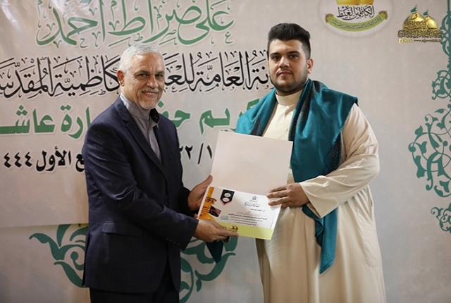 برعاية مباركة من قبل الأمين العام للعتبة الكاظمية المقدسة خادم الإمامين الكاظمين الجوادين الدكتور حيدر حسن الشمّري، كرّمت الأمانة العامة للعتبة الكاظمية المقدسة الطلبة الفائزين والمشاركين من البنين والبنات في مسابقة حفظ زيارة عاشوراء المباركة التي أقامها مركز القرآن الكريم التابع لقسم الشؤون الفكرية والثقافية العتبة المقدسة في حفل شهدته رحاب الصحن الكاظمي الشريف تزامناً مع فعاليات مهرجان ربيع الولادة الرابع المُقام تحت شعار: (على صراطِ أحمدٍ).
