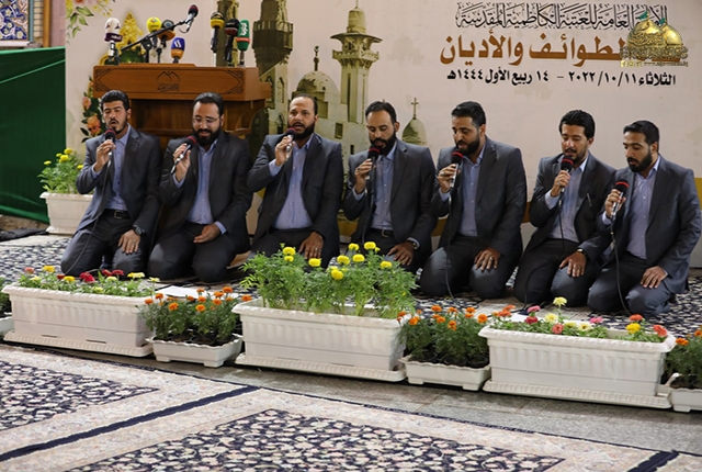 لأجل إدامة روابط المنظومة القيمية والاجتماعية والثقافية والدينية التي يرتبط بها أبناء المجتمع العراقي، وإشاعة مفاهيم التسامح والاعتدال والانطلاق بركب الحياة الإنسانية الى الأمام وفق مبدأ التوافق والانسجام، وبرعاية مباركة من قبل الأمين العام للعتبة الكاظمية المقدسة خادم الإمامين الكاظمين الجوادين الدكتور حيدر حسن الشمّري، انطلق في رحاب الصحن الكاظمي الشريف مُلتقى الطوائف والأديان الذي أقيم ضمن فعاليات مهرجان ربيع الولادة الرابع تحت شعار: (على صراطِ أحمدٍ)، بمشاركة كوكبة من علماء الدين الأفاضل.