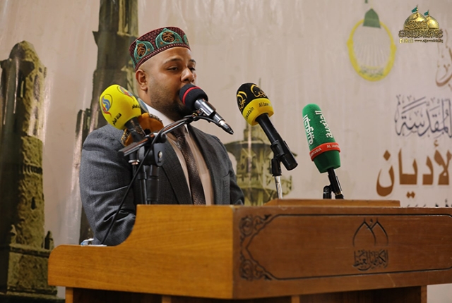 وشدد في حديثه على ضرورة الرجوع لكتاب الله وسنّة نبيّه وأهل بيته "عليهم السلام" لحلّ جميع الإشكالات، واستثمار الخطب الدينية والتثقيفية التي تحثّ على عامل الوحدة، وتعزيز الوعي لدى المجتمعات الإسلامية وغيرها بشأن التسامح والحوار والتنوع الثقافي والديني والمذهبي والاحتكام إلى العقل والمنطق، وأن يكون هذا المُلتقى وصاحب هذه الذكرى النبي الأكرم محمد "صلى الله عليه وآله وسلم" وحفيده سادس الأئمة الإمام الصادق "عليه السلام" منطلقاً لتحقيق ما يصبون إليه باعتبارهم القدوة والمثل الأعلى في التعايش السلمي وعوامل التوحيد بين الطوائف كافة).