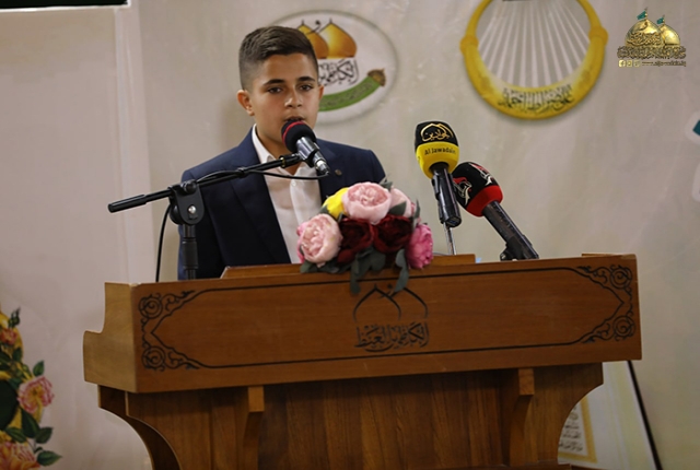 استهل الحفل بتلاوة مباركة من الذكر الحكيم من قبل الطالب عماد عبد الكريم، تلتها كلمة العتبة الكاظمية المقدسة ألقاها فضيلة الشيخ عماد الكاظمي قائلاً: (الحمد لله الذي مَنَّ عليكم بنعمة القرآن الكريم ونسأله تعالى أن يديم عليكم هذه النعمة فأنتم ممن تمسكتم بالعترة الهادية فهذا يجسّد أروع صور الكمال.
