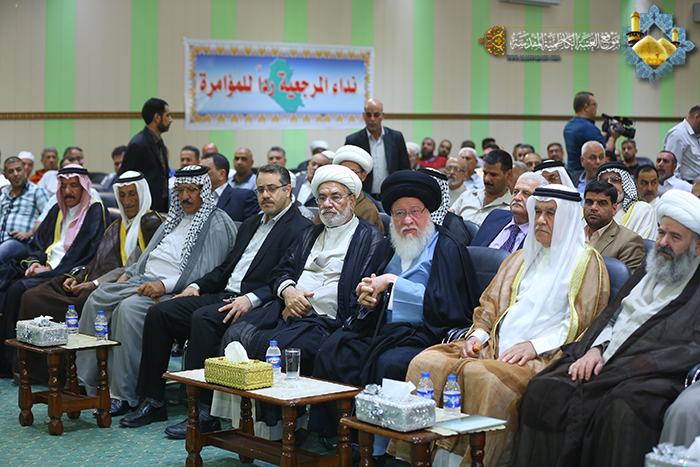 حضر وفد العتبة الكاظمية المقدسة الذي ترأسه نائب الأمين العام للعتبة الكاظمية المقدسة السيد"محمد الحيدري" وعدداً من أعضاء مجلس الإدارة ورؤساء الأقسام والشُعب وخَدَمة الإمامين الجوادين "عليهما السلام" مؤتمراً أقيم في قاعة صدر العراق، تحت شعار: "سلامة العراق واجب مقدس" ووجه فيه سماحة آية الله العظمى السيد "حسين السيد إسماعيل الصدر" وسط حضور حشد من الفضلاء ورجال الدين وشيوخ العشائر والوجهاء في مدينة الكاظمية المقدسة والمناطق المحيطة بها، ودعا فيها سماحته قائلاً : التقينا اليوم على حب قرة أعيننا العراق الجريح بيتنا وملاذنا وخيمتنا واجتمعنا من أجل القيم والمبادئ السامية التي تحفظ وجودنا وكرامتنا وعزتنا وانتمائنا، لنؤكد وأياكم أنتم رموز العراق الوطنية الحب والولاء للوطن العزيز ويجب أن نرتبط ارتباطاً حقيقياً مع العراق لأنه هو ماضينا وحاضرنا ومستقبلنا ..