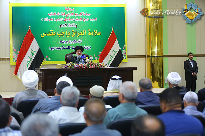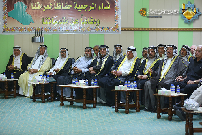 لا بد لنا اليوم كشعب عراقي أن نجسد وطنيتنا ووحدة كلمتنا وتراص صفوفنا بأفعالنا وسلوكنا وقيمنا ومبادئنا، لأن هناك هجمة شرسة تُشيع الفرقة بين أبناء شعبنا لأجل أن تصل إلى غاية تقسيم العراق وإثارة الفوضى بين طوائفه، فيجب أن يكون هناك تنسيق عالٍ ما بين الرموز الدينية والعشائرية والثقافية لتوعية المجتمع من آثار هذا المخطط الخبيث. وانطلاقاً من توجيهات المرجعية الرشيدة علينا أن نقف جميعاً مع جيشنا العراقي والأجهزة الأمنية الأخرى لأنهم هم المضحون من أجلنا وهم من قدموا أنفسهم لأجل العراق وقيادته وسيادته وسلامته إذ لا بد أن نقف معهم بكل ما نملك من قدرات وأمكانيات فوجودنا بوجوده وعزتنا بعزته وكرامتنا بسلامته.