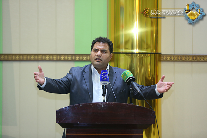كما وجه رسالة إلى جميع التجار في هذا البلد العزيز أكد فيها مراعاة أبناء هذا الشعب وابتعادهم عن استغلال الظروف القاهرة التي يمر بها البلد ودعاهم إلى الرجوع إلى وطنيتهم وضمائرهم، وقد وصف هذا النوع من التجار بالإرهاب الاقتصادي مطالباً من الجهات الرسمية والشعبية الالتفات إلى هؤلاء، وأختتم قوله داعياً العلي القدير السلامة للعراق ولشعبه وحفظ سيادته وكرامته .. وتخلل المؤتمر إلقاء القصائد الوطنية التي مجدت بالعراق ووحدة أطيافه. وعلى صعيد ذي صلة تحدث نائب الأمين العام للعتبة الكاظمية المقدسة السيد "محمد الحيدري" قائلاً: إن هذه اللقاءات تؤكد في طبيعتها على اللحمة الوطنية وتعزيز الشعور بالأخوة بين العراقيين بكل أطيافهم، فالعراق مسؤولية الجميع.. وتلبية لنداء المرجعية علينا جميعاً أن نهب للدفاع عن مقدساتنا وعراقنا الحبيب، ونسأل الله تعالى أن ينصر الحق ويجعل كلمته باقية هي العليا أنه سميع مجيب.