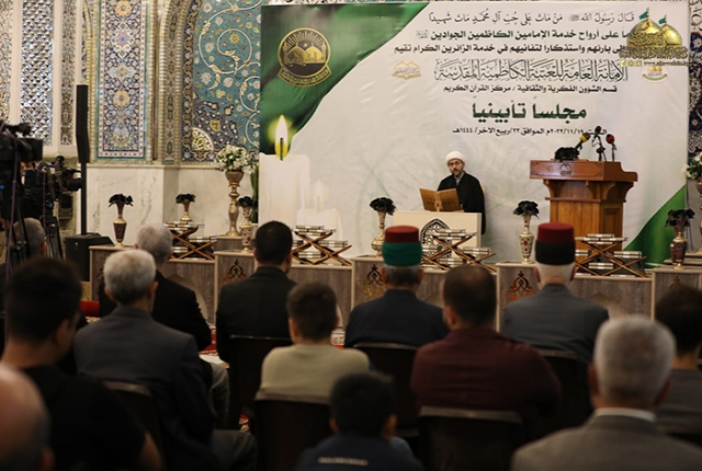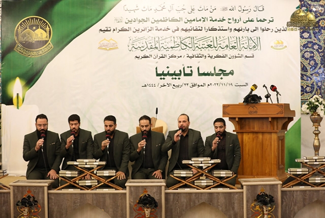 برعاية الأمين العام للعتبة الكاظمية المقدسة، خادم الإمامين الكاظمين الجوادين الدكتور حيدر حسن الشمّري، أقام مركز القرآن الكريم التابع لقسم الشؤون الفكرية والثقافية في العتبة المقدسة، مجلساً تأبينياً خاصاً ضمن فعاليات محفل ترانيم السماء القرآني الأسبوعي ترحماً على أرواح خَدَمَة العتبة الكاظمية المقدسة الذين أوافاهم الأجل ورحلوا إلى بارئهم، مستذكرين مواقفهم المشرّفة، وإخلاصهم، والتزامهم، وتفانيهم خلال مسيرتهم الوظيفية والخدمية ونيلهم شرف الخدمة حين حملوا شعار: "خدمة زائري الإمامين الكاظمين الجوادين "عليها السلام .. شرفٌ لنا " وقضوا سنوات حياتهم في خدمة العتبة المقدسة وزائريها الكرام.