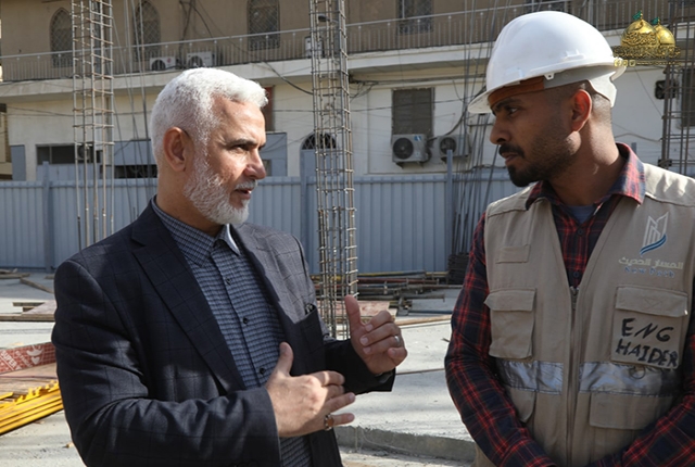 تفقد الأمين العام للعتبة الكاظمية المقدسة، خادم الإمامين الكاظمين الجوادين الدكتور حيدر حسن الشمري، وبرفقة مجموعة من ملاكات قسم الشؤون الهندسية، سير الأعمال التي يشهدها مشروع صحن الإمام صاحب الزمان "عجل الله فرجه الشريف" ضمن حملة التطوير الجارية في محيط العتبة الكاظمية المقدسة لتوفير خدمات جديدة للزائرين الكرام، وإضافة مساحات عبادية لهم.