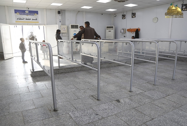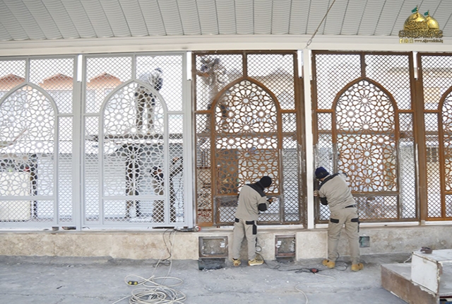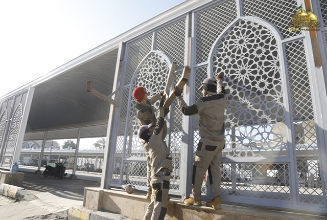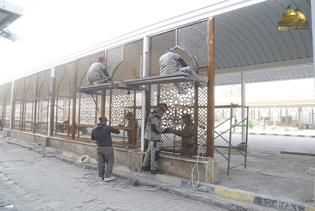 فيما يخص تنفيذ السور الحديدي الذي يحيط بالصحن مع أبواب لدخول الزائرين الكرام، حيث تم إنجازه بنسبة (100%)، وكذلك شهدت الوحدات الصحية للرجال والنساء، وخدمات أمانات الحقائب والموبايل وعربات الأطفال وعربات المعاقين، ومناداة المفقودين ومواقع تفتيش الرجال والنساء ومنظومة السونار وأماكن استراحة المنتسبين نسبة إنجاز (100%).
