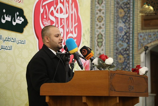 استهل الحفل الذي أقيم في رواق سيدنا عبد الله بن عبد المطلب "عليه السلام" في رحاب الصحن الشريف، بتلاوة من الذكر الحكيم شنّف بها أسماع الحاضرين قارئ العتبة المقدسة الخادم قاسم الزاملي، أعقبها كلمة الأمانة العامة للعتبة الكاظمية المقدسة وألقاها نائب أمينها العام المهندس سعد محمد حسن بين فيها قائلاً: (نلتقيكم اليوم ونحن نعيش في رحاب الإمامين الكاظمين الجوادين عليهما السلام ذكرى ولادة أمير المؤمنين علي بن ابي طالب وحفيده الإمام محمد بن علي الجواد عليهما السلام وبهذه المناسبة الكريمة نرفع أسمى التبريكات واجمل التهاني إلى مقام صاحب العصر والزمان الحجة بن الحسن عجل الله تعالى فرجه الشريف وإلى علمائنا الاعلام والعالمين الإسلامي والإنساني.. وأيضا لا ننسى شهداءنا الأبرار وأمواتنا في هذه المناسبة الكريمة من المرور على أرواحهم العطرة ونفوسهم الزكية لنقدم لهم عبارات التهنئة ممزوجة بالشوق والحنين والدعاء لهم أن يكونوا في جنات الفردوس العاليات في مقعد صدق عند مليك مقتدر.. فما أجمل هذه المناسبة التي من بركاتها كان احتفاؤنا هذا بأبنائنا الأعزاء وهم يخطون خطوتهم الاولى نحو عالم المسؤولية الشرعية.