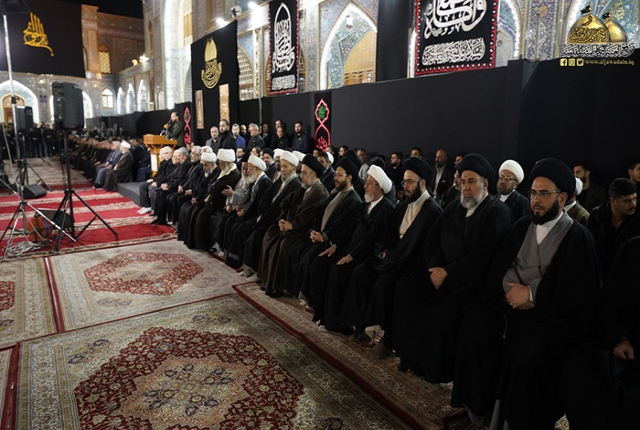 كما يفخر العُلماء والأساتذة والطلاب في الحوزة العلمية في النجف الأشرف في التشرف بخدمة زوارك، فهاهم طلاب العلوم الدينية كعادتهم في مشروعهم التبليغي يتشرفون بجواب المسائل الشرعية، ومحاولة حل المشاكل الاجتماعية ومشاركة هموم الأيتام من آل محمد، فشكراً لله على توفيقه لذلك، وشكراً لأهلنا الزوار الأعزة الأحبة وهم يتفضلون علينا بأن نكون في خدمتهم).