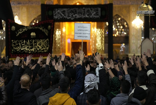 وأضاف: فطوبى وحسن المآب لكل الجموع الغفيرة زائري الإمامين الكاظمين "عليهما السلام" وهم يرثون ويندبون ويعزون ويقيمون شعائر الحزن والعزاء وهم يتوسلون بكما إلى الله تعالى في صلاح دينها ودنياها وآخرتها وقضاء حوائجها.