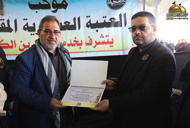 بتوجيه من قبل الأمين العام للعتبة الكاظمية المقدسة، خادم الإمامين الكاظمين الجوادين الدكتور حيدر حسن الشمّري، زار وفد قسم العلاقات العامة في العتبة المقدسة، مواكب العتبات المقدسة الخدمية الوافدة إلى مدينة الكاظمية المقدسة في ذكرى شهادة الإمام موسى بن جعفر الكاظم "عليه السلام"، وقدموا خلال الزيارة الدروع التذكارية، وشهادات الشكر والامتنان، وذلك تقديراً لدورهم في الإسهام بنجاح مراسم زيارة الخامس والعشرين من شهر رجب الأصب المباركة، ودعمهم للأمانة العامة للعتبة الكاظمية المقدسة في التشرّف والمشاركة بتقديم الضيافة والخدمات اللازمة للحشود الزائرة والمواكب الحسينية القاصدة مدينة الكاظمية المقدسة، وزيارة الإمامين الكاظمين الجوادين "عليهما السلام"، وإحيائهم لهذه المناسبة الأليمة.